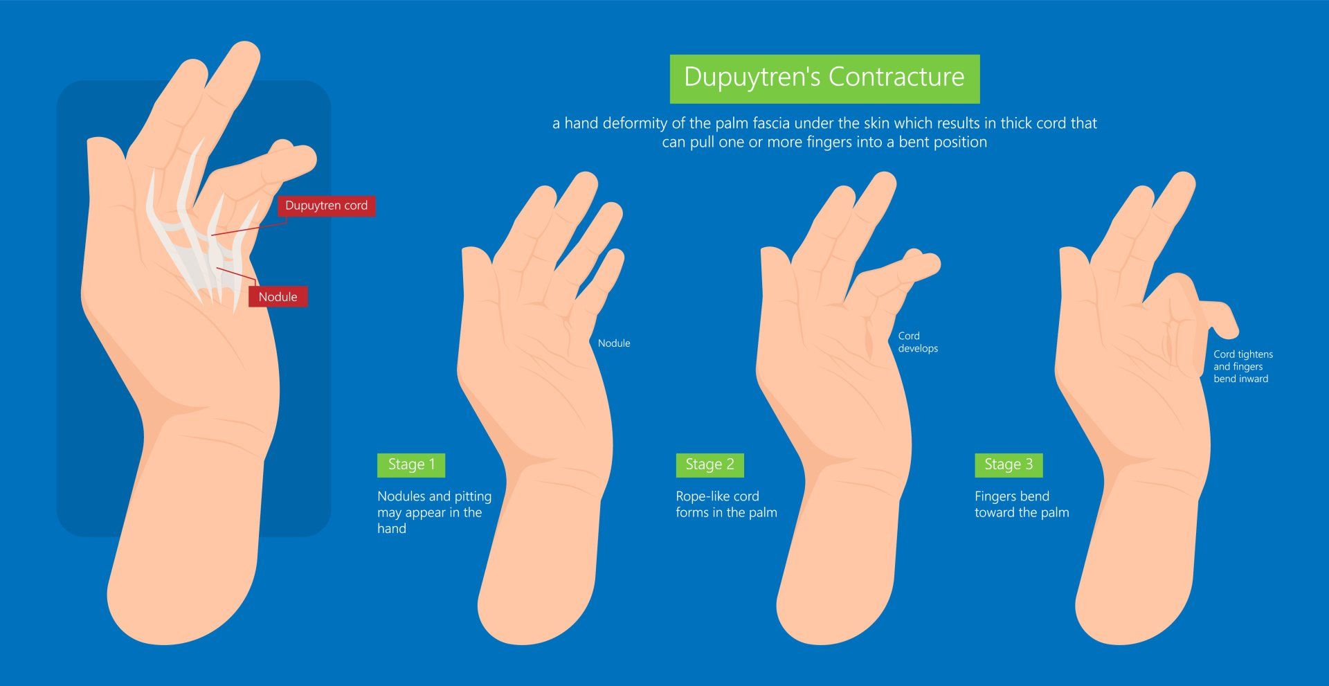 - Commonly found within families which also happens to be a more severe and aggressive form compared to those without a family history of Dupuytren’s