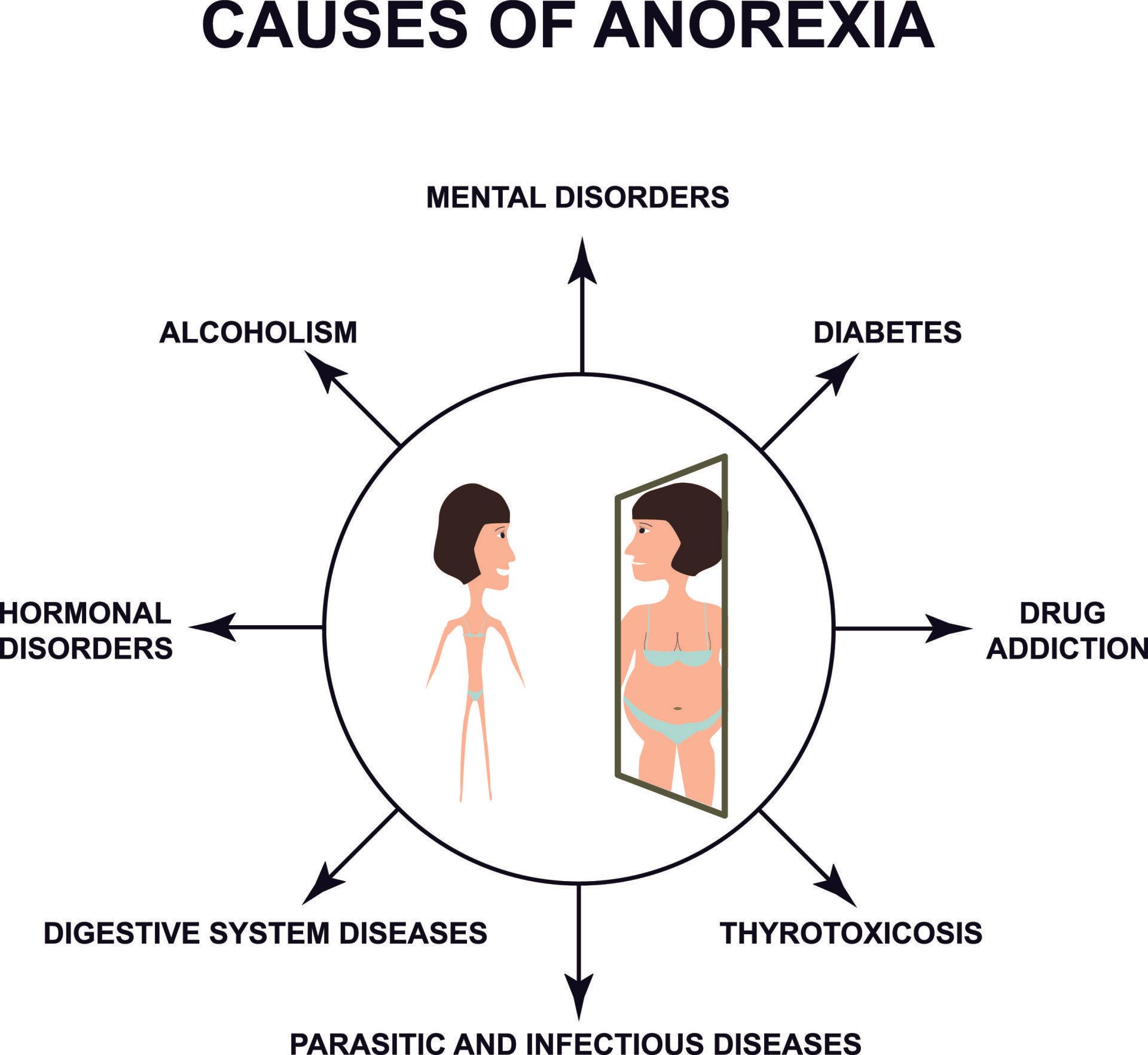 - Increased risk of suicide and earlier death associated with the more severe eating disorders such as anorexia nervosa and bulimia