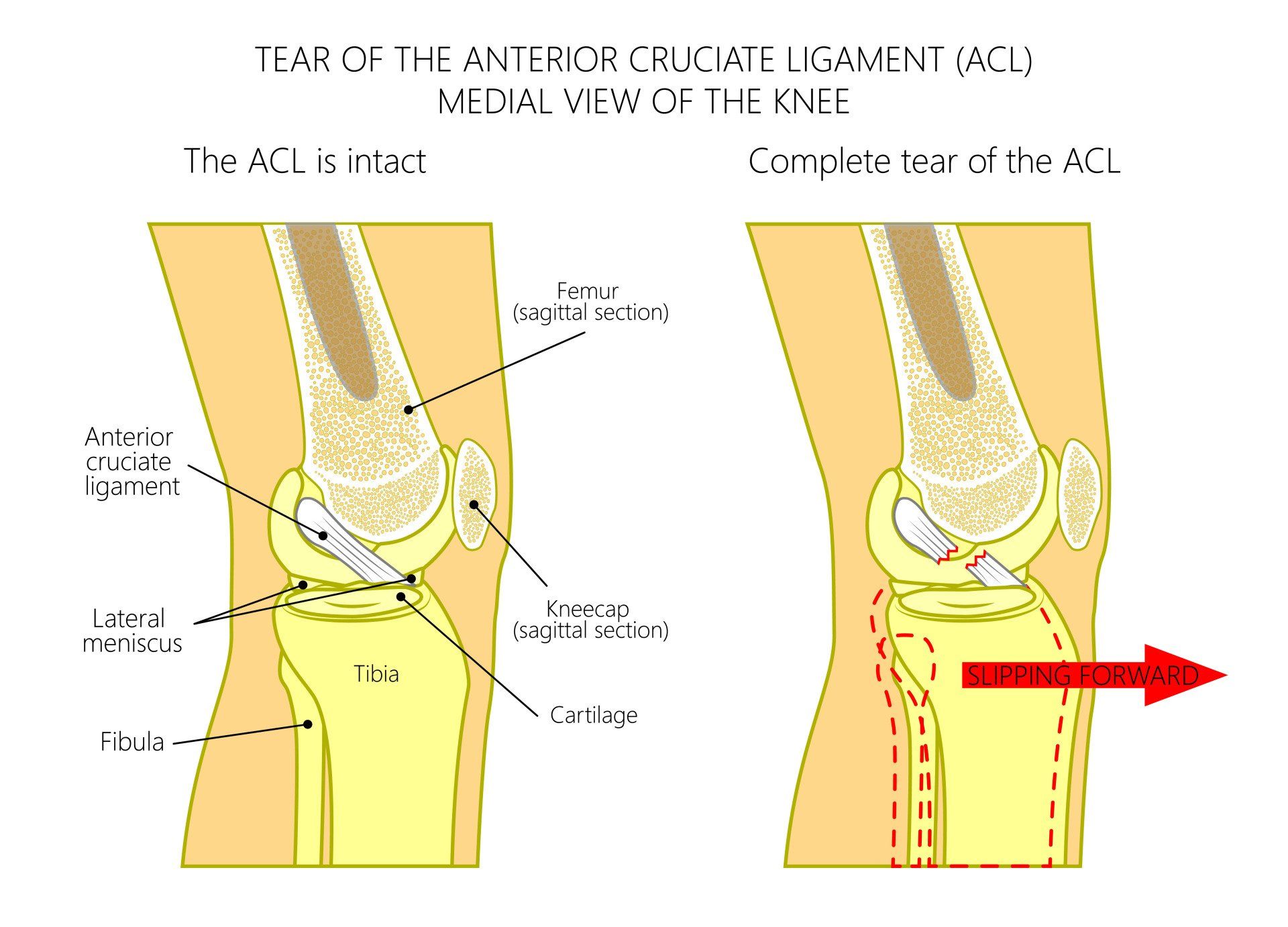 - If a patient tries to play sport following an ACL tear and once the knee swelling subsides, they will have a feeling of instability with the knee buckling under them and they will be unable to reliably: