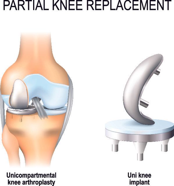 - In cases where the arthritis is confined to one side of the knee then a unicompartmental (partial) knee replacement (arthroplasty) would be more suitable than a total knee replacement so as to preserve the unaffected parts of the knee